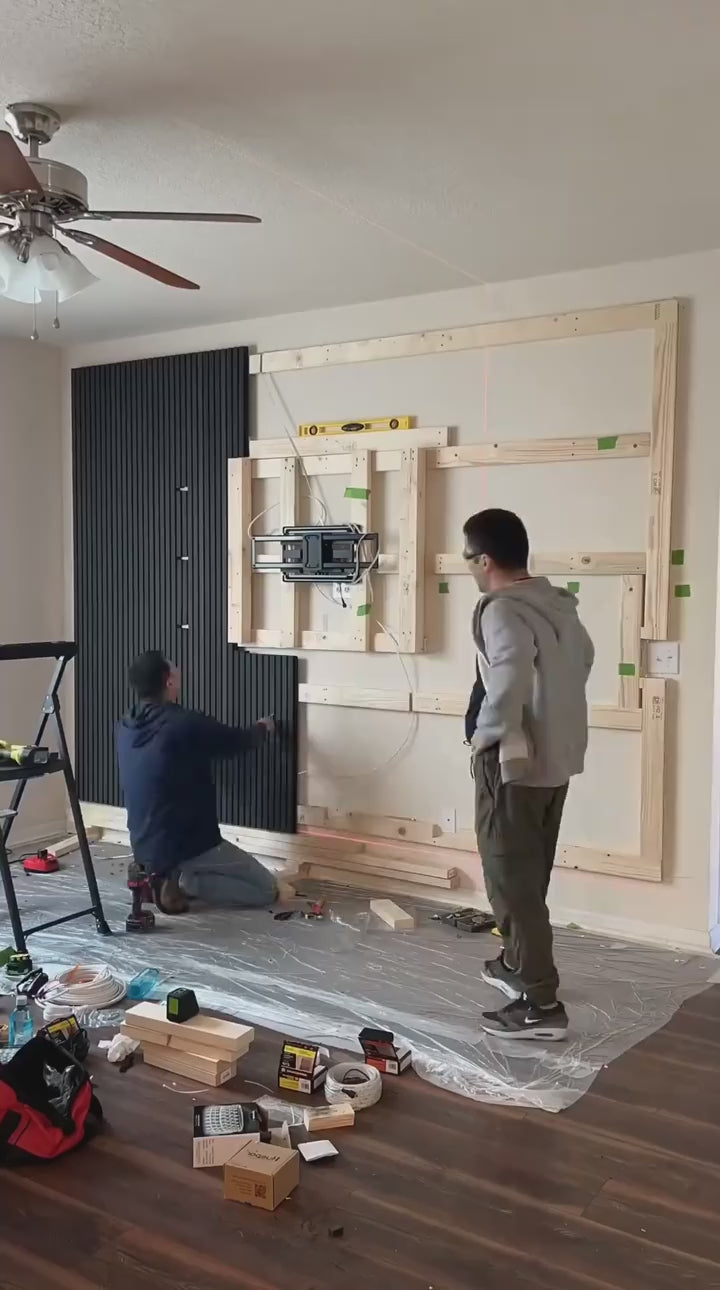 Realizziamo da zero la tua parete tv con doghe, marmo e led