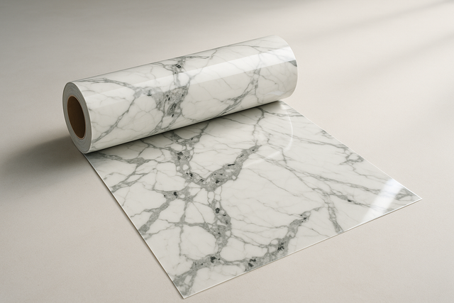Dai nuova vita alle tue pareti con il rotolo adesivo in PVC effetto marmo lucido, la soluzione ideale per un restyling moderno, elegante e veloce.