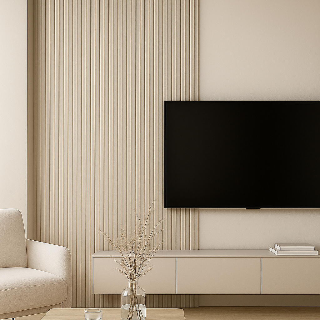 Ogni doga misura 16 x 290 cm ed è composta da 4 listelli da 2x2 cm con spazi da 2 cm, creando un ritmo visivo equilibrato e minimalista, ideale per pareti TV, soggiorni, ingressi o locali moderni.